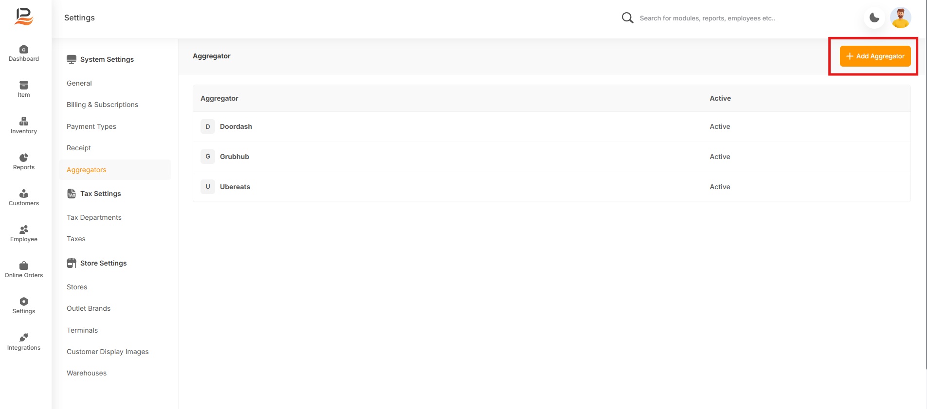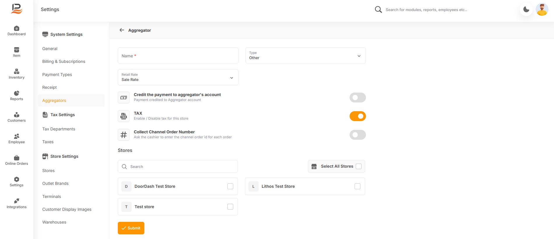 The Aggregator Settings allow merchants to sell items at different rates on DoorDash. Merchants can: