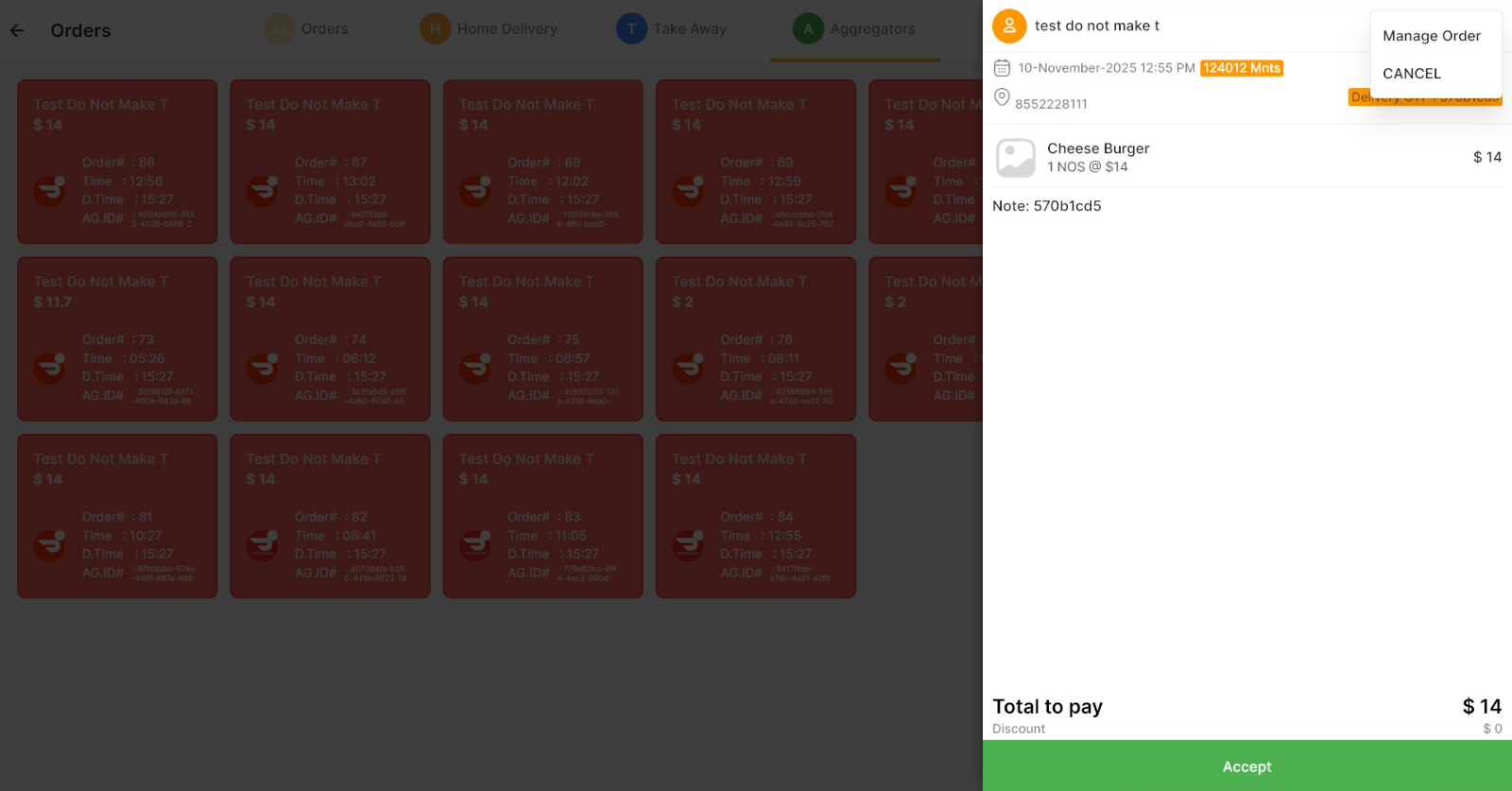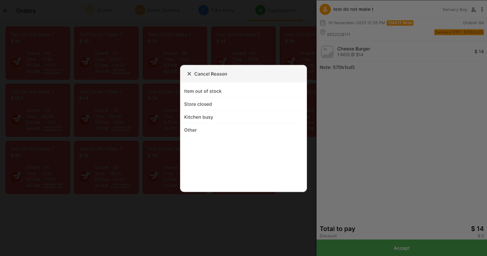 LithosPOS app > Orders > Aggregaters/Doordash > Cancel