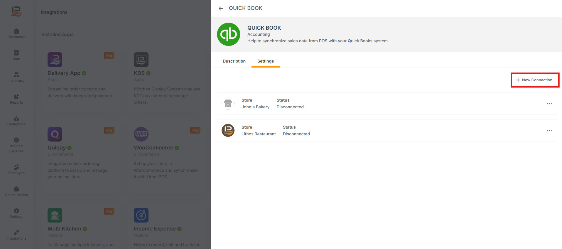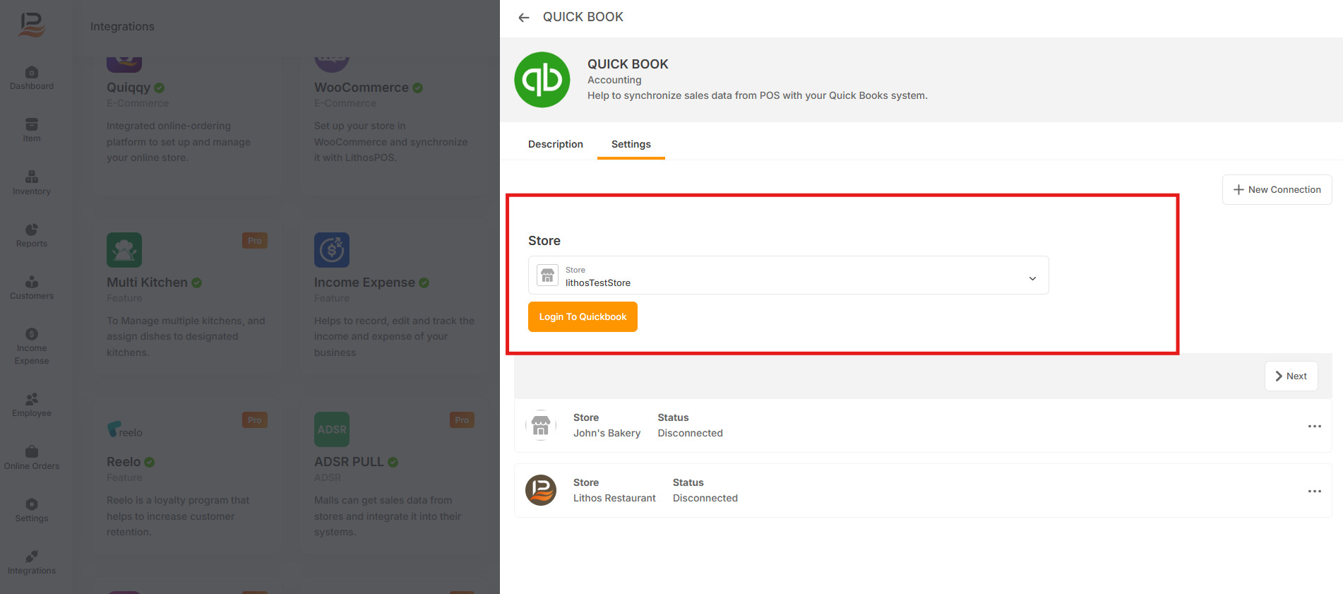 The QuickBooks integration in LithosPOS allows you to synchronize your sales data directly with your QuickBooks accounting system. This integration ensures that your sales and financial data are consistently and accurately updated in QuickBooks, making the management of sales and accounting processes seamless and efficient.