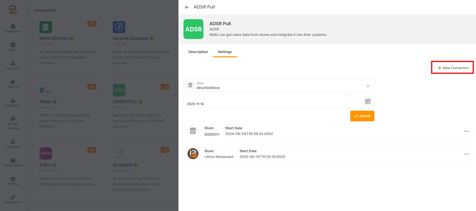 - Click on +New Connection to add a store for data pulling.
