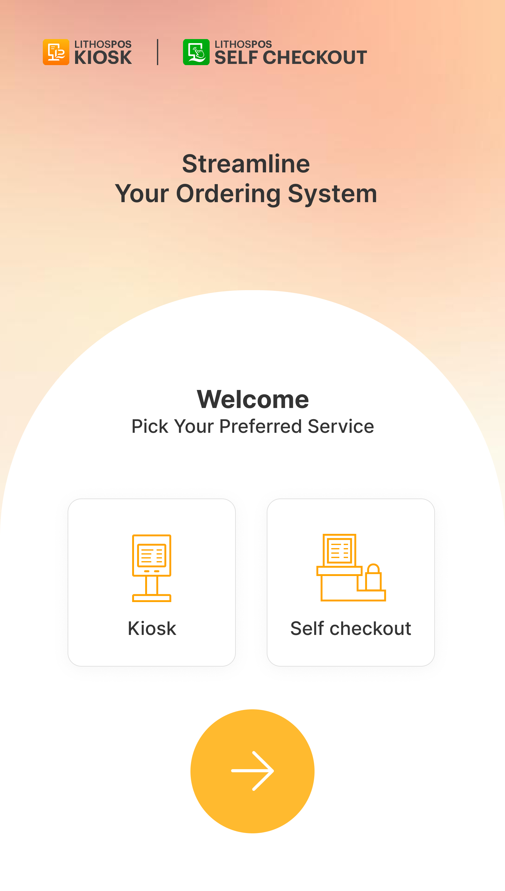- After logging in, choose a layout for your store. You can select either Kiosk or Self-Checkout mode.