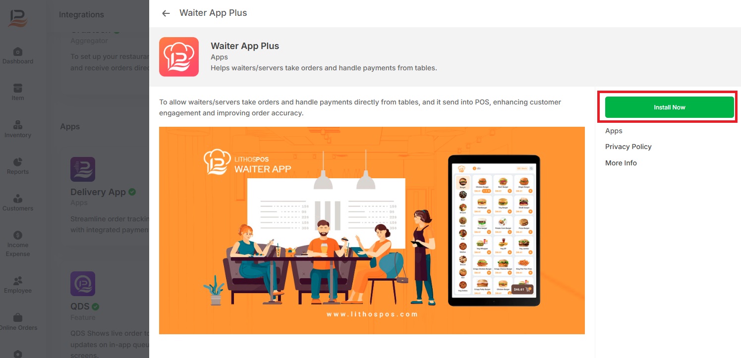 - Find LithosPOS WaiterApp in the list and click to install.