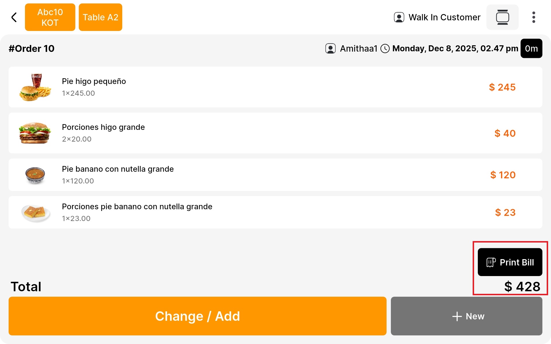- Click on Print bill to print the bill.