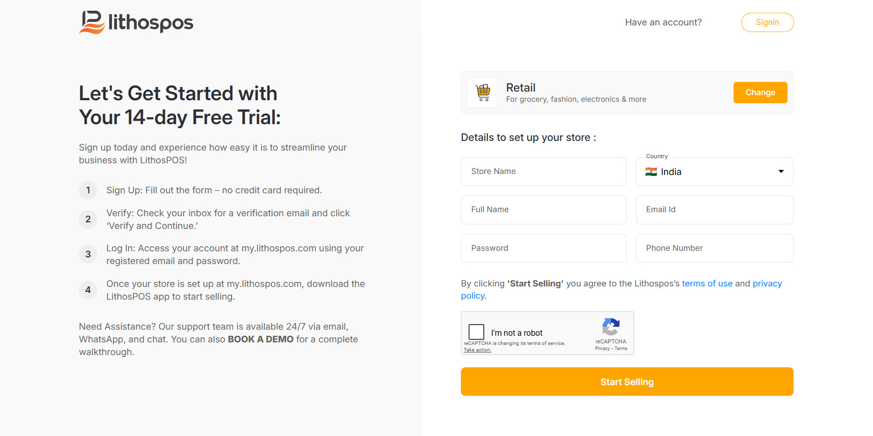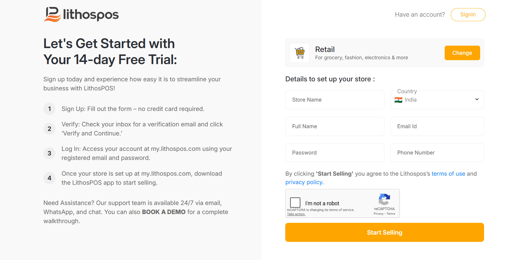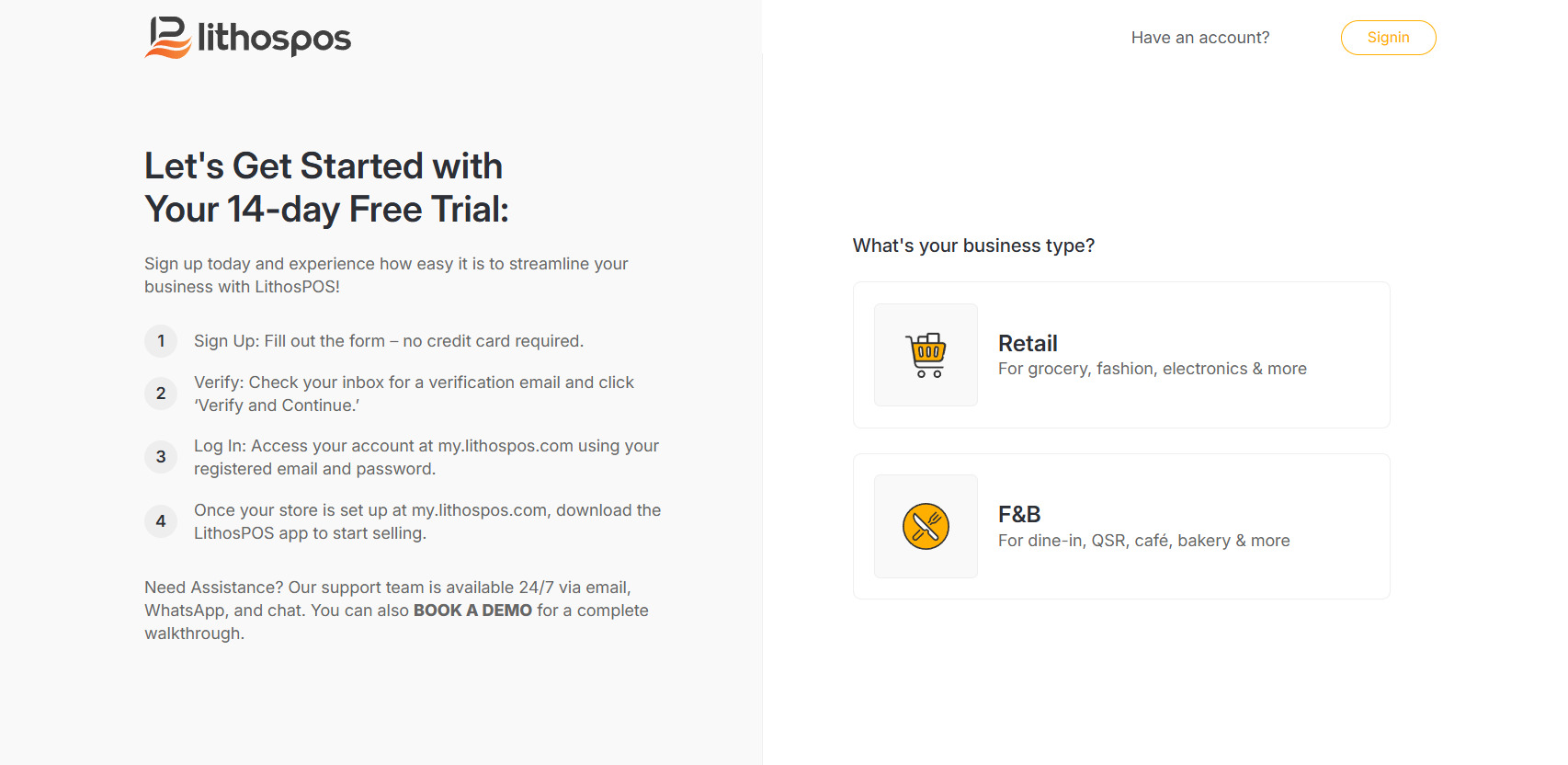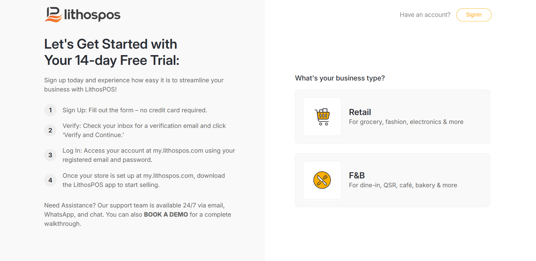 Sign up for LithosPOS